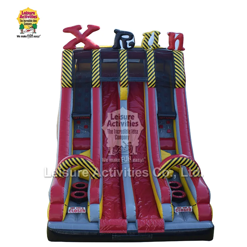 Леисуре Ацтивитиес® је произвођач и добављач професионалног тобогана на надувавање Кстреме Фун Рун Доубле Лане. Одликује га двоструки паралелни дизајн клизача, комбинујући забаву, велики капацитет и издржљивост. Једноставан је за руковање и погодан за све старосне групе.